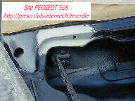 La 505 avant travaux, début du démontage des bras d'essui-glaces,découverte d'un point de rouille.