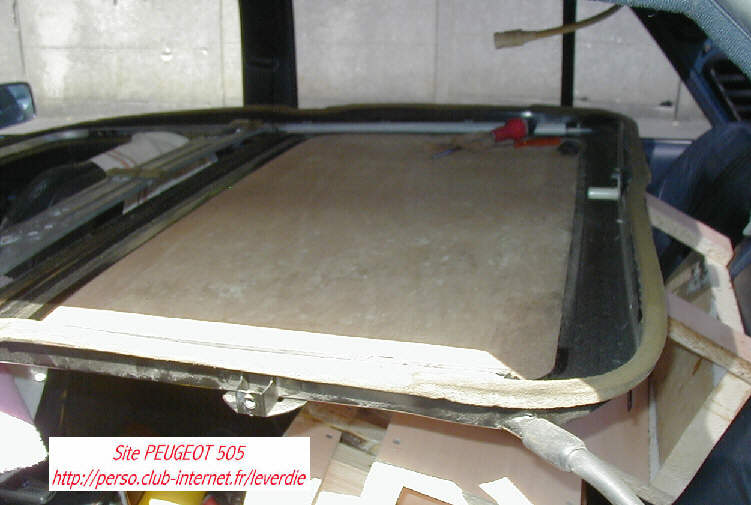 J'ai enfin compris pourquoi lorsque je garais la 505 dans la descente de mon garage et qu'il pleuvait, à chaque fois que la 505 se retrouvait à plat , je me recevais de l'eau par le toit ouvrant. alors que lorsque la 505 était à plat et qu'il pleuvait , il n'y avait jamais d'eau dans la 505. L'explication est la suivante : en bout du toit ouvrant, un mastic étanche la partie gouttière de la traverse arrière, or dans ma 505, le mastic était craquelé en partie haute , laissant passé l'eau lorsque la 505 était garée en pente, mais lorsque la 505 était à plat, l'eau n'atteignait jamais cet endroit car le débit d'eau devait être trop faible.